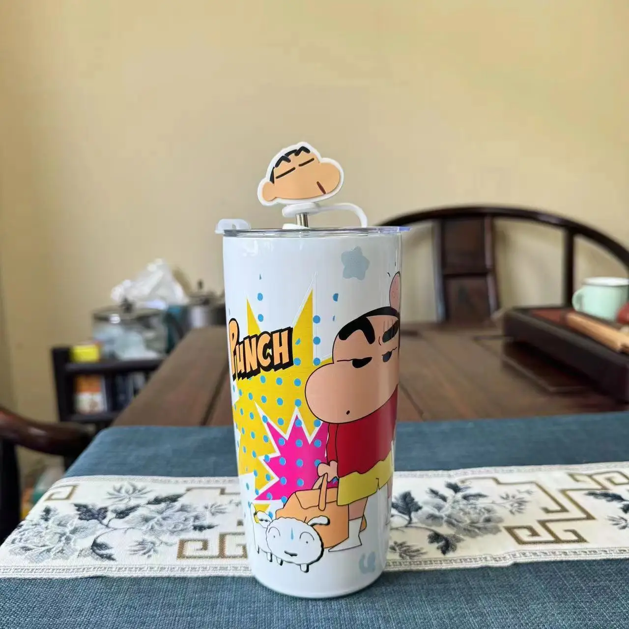 600MlCrayon Shin-Chan Thermos Cup Cartoon Desktop Straw Cup Large Capacity Net Red High Appearance Level Water Cup Birthday Gift