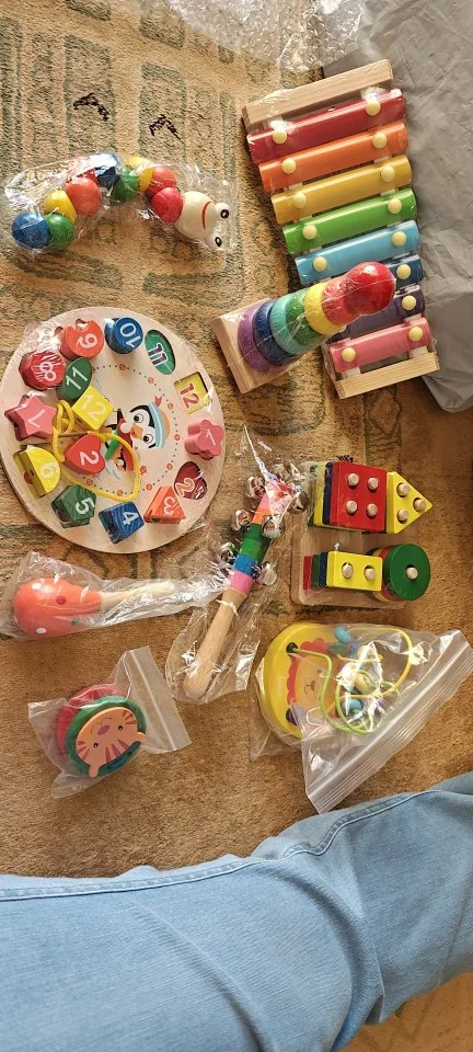 A Montessori-inspired wooden musical toy set designed to help toddlers explore rhythm, sound, and creativity. Made with smooth, child-safe wood, it boosts early learning by improving motor skills, hand–eye coordination, focus, and sensory development. A perfect way for parents and kids to enjoy fun musical playtime together.