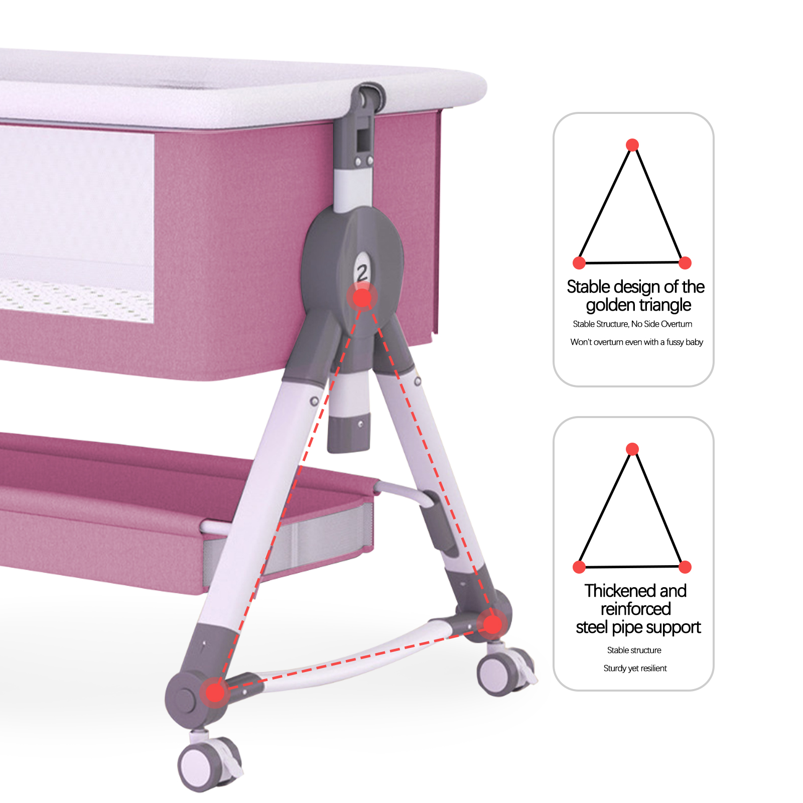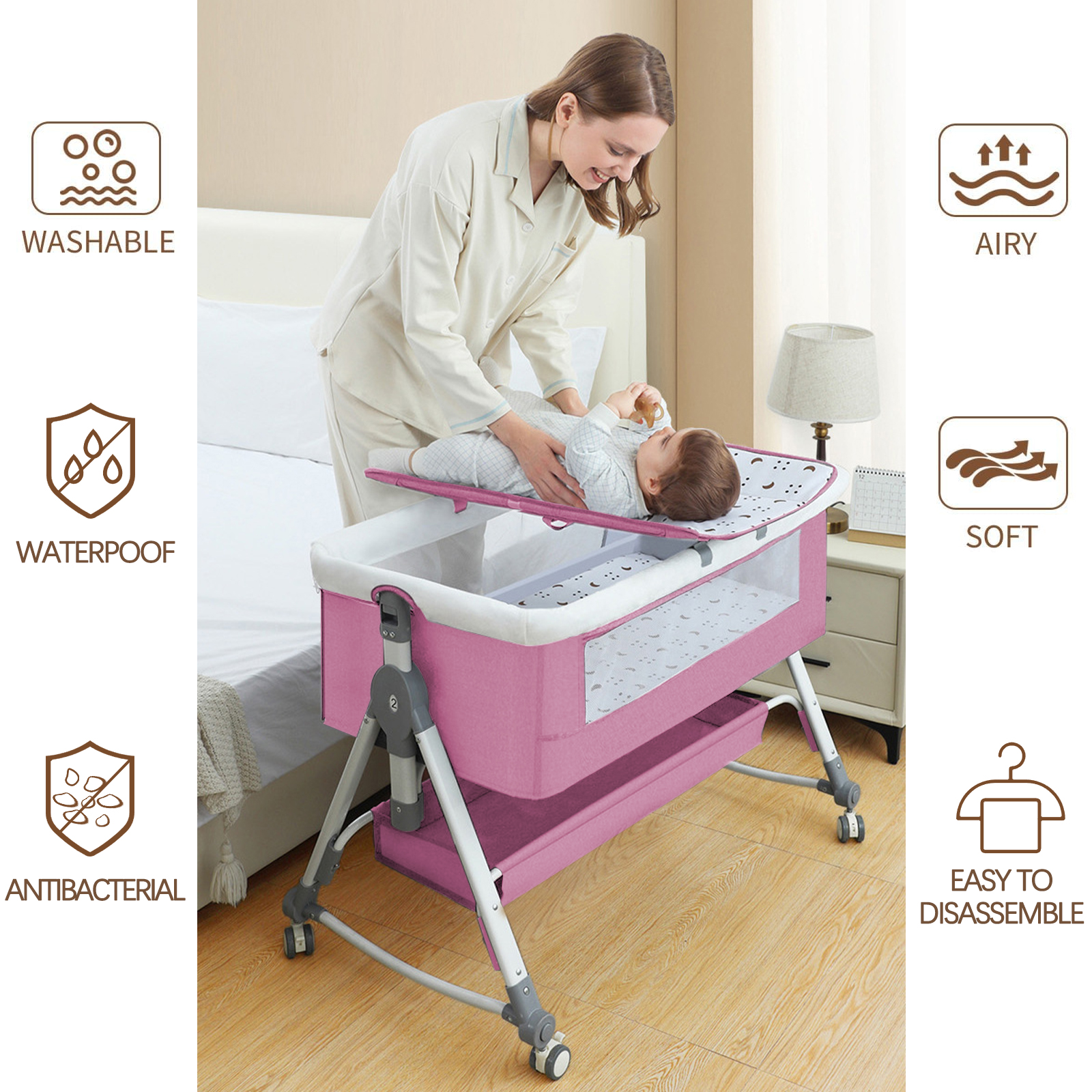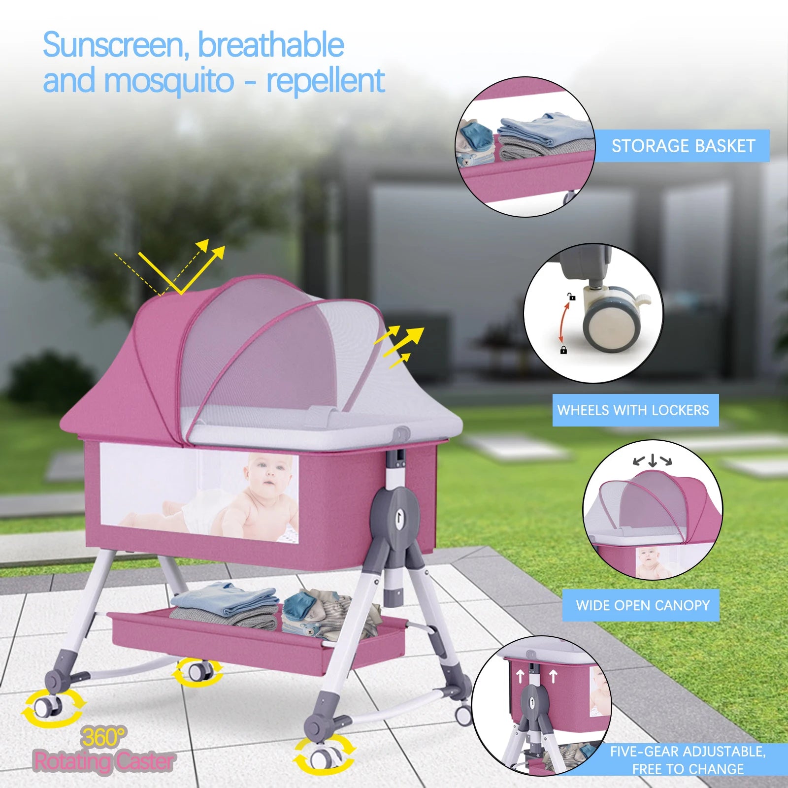 Baby Crib Portable Splicing Cradle Bed Foldable Height Adjustable 3 in 1 Bassinet Bedside Sleeper with Wheels mosquito net