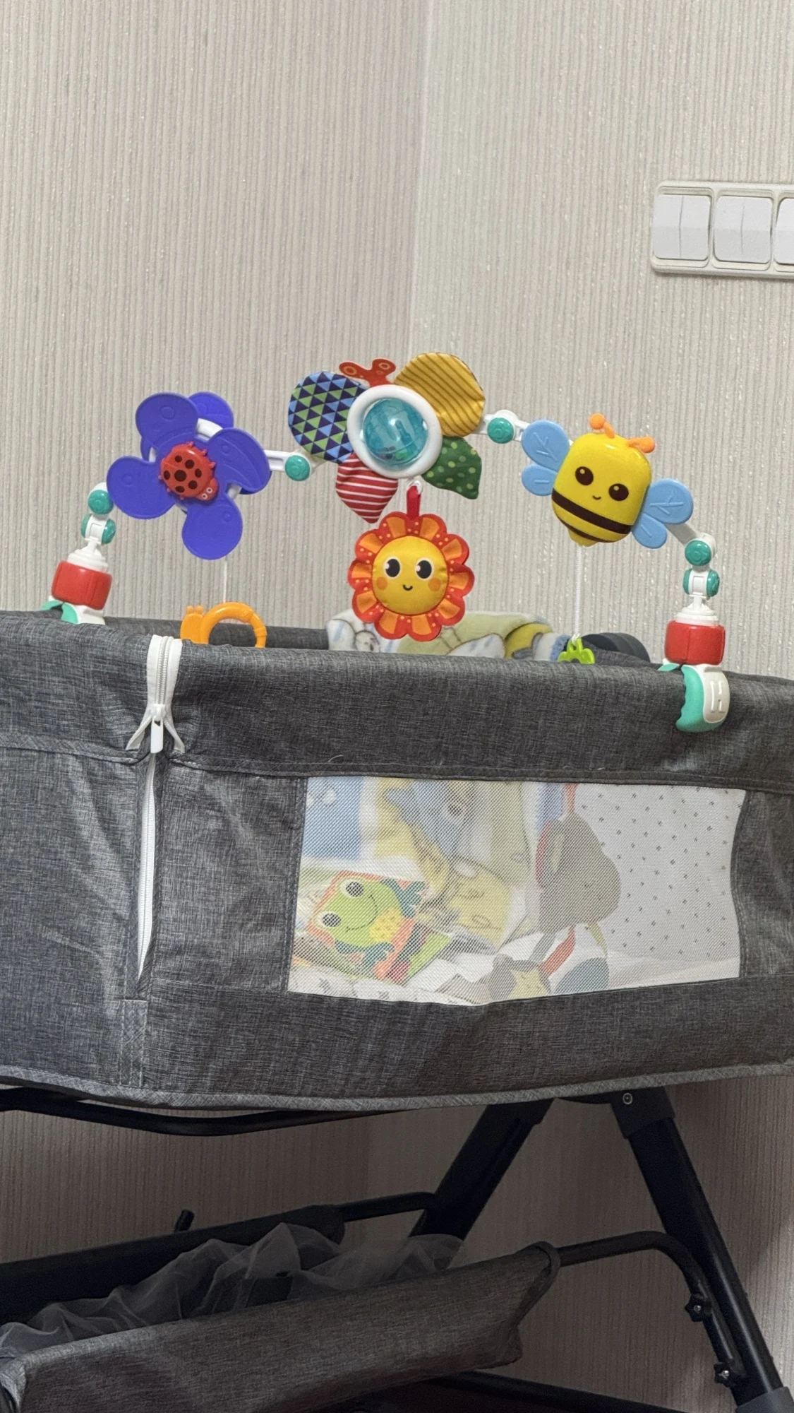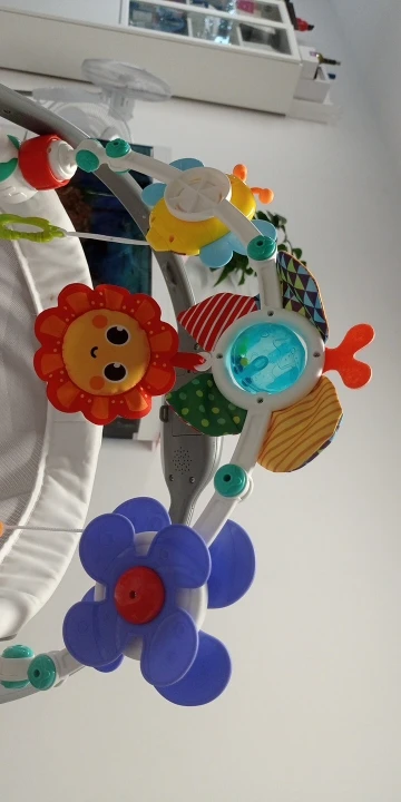 -Including detachable toys for sensory stimulation.