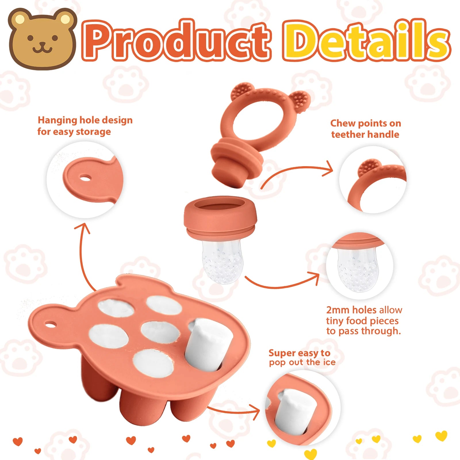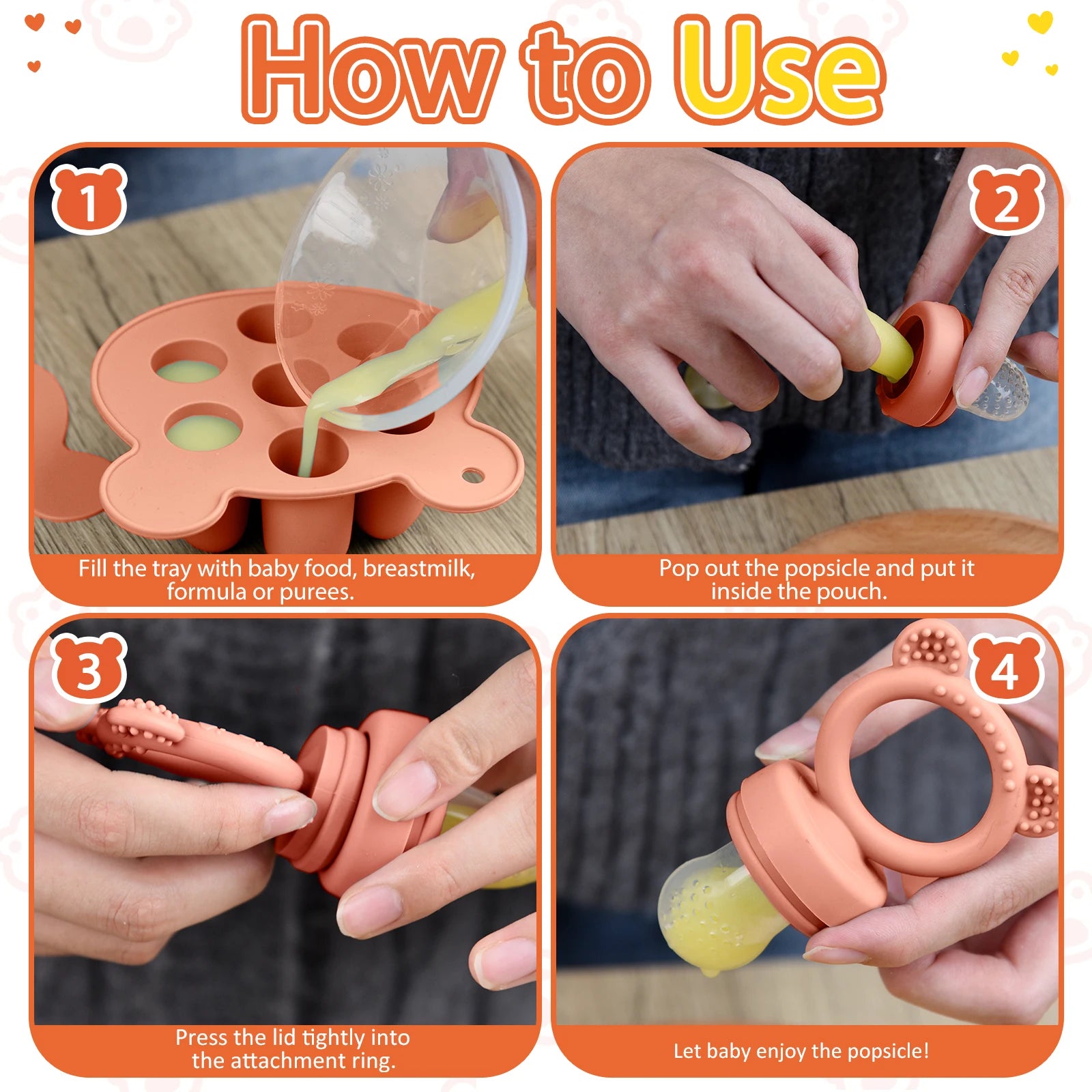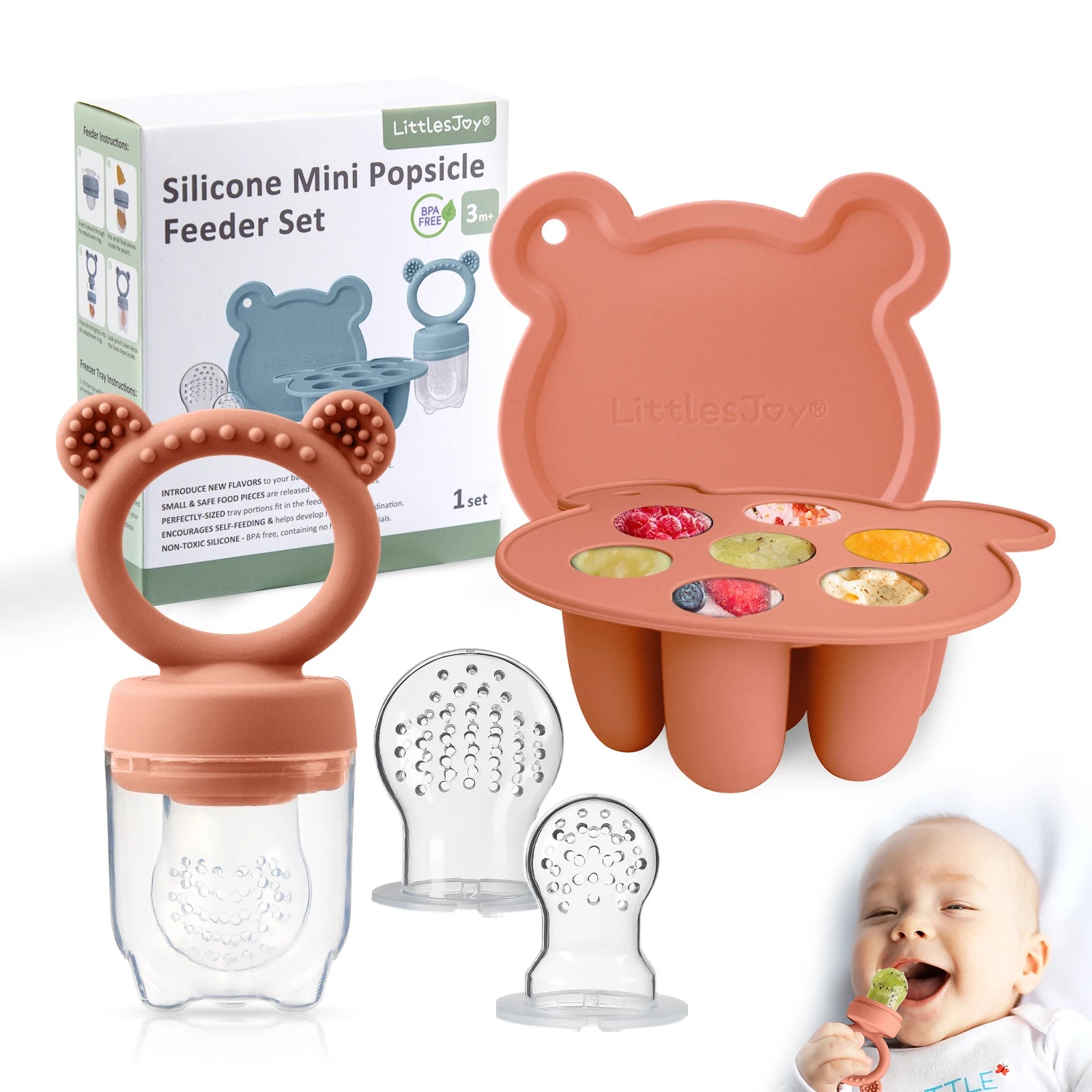 Gift set-Animal Design Baby Fruit Feeder Freezer Tray Baby Food Frozen Breast Milk Ice Cube Mold Fruit Feeder Set With Nipples