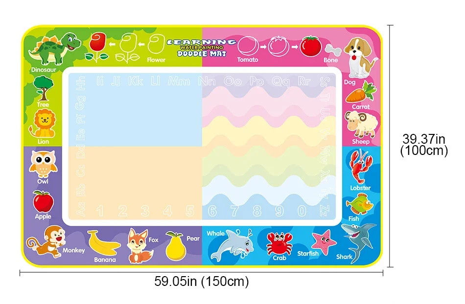 No ink, No paint, Non-toxic, Non-polluting. Never make a mess. The back of the mat is water-resistant nylon material,clean and safety for kids. The traces will never be chaotic, satisfying the imagination and creativity of the kids' infinite painting.