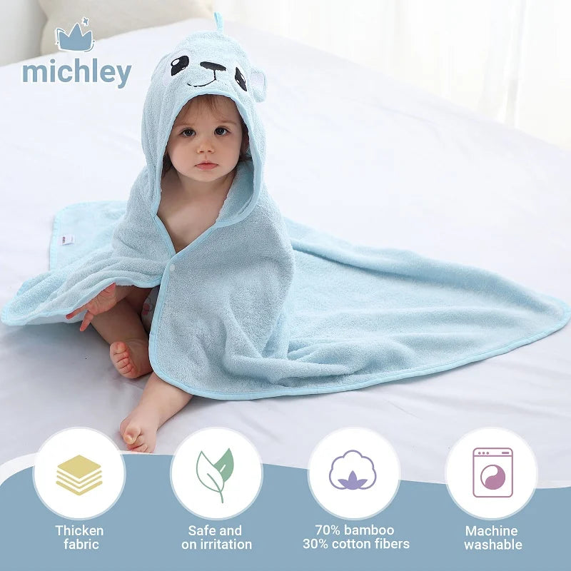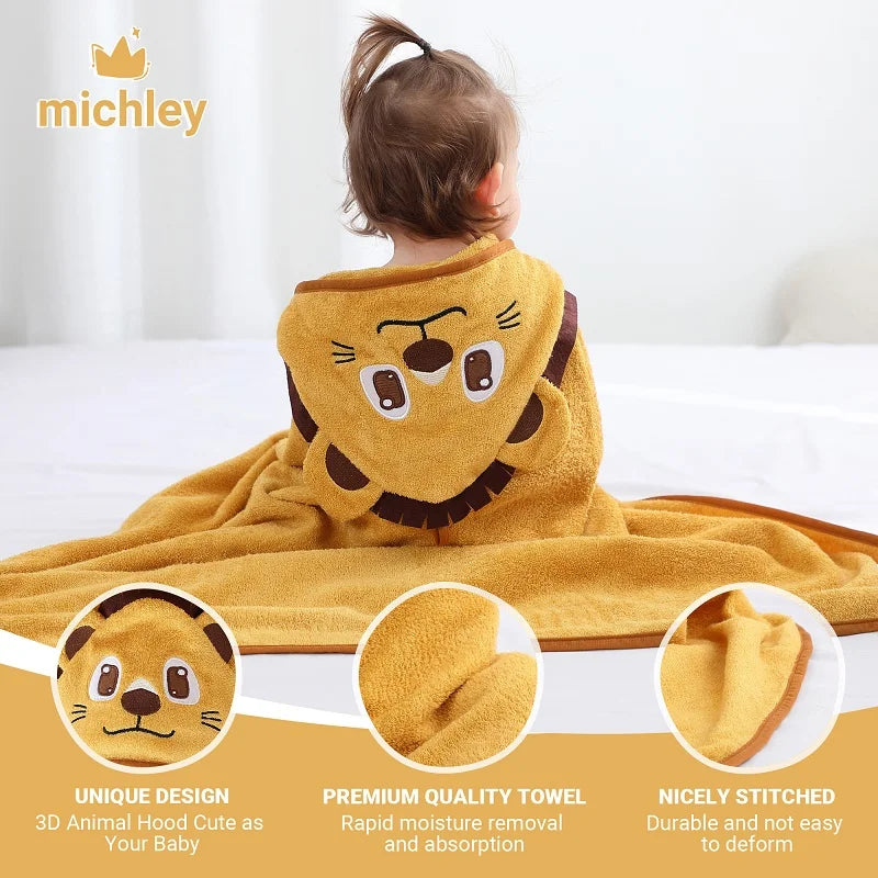 MICHLEY Lion Bamboo Baby Bath Towel Hooded Newborn Cute Cartoon Toddler Infant Bathrobe Shower Unisex For Kids Girls Boys 0-5T