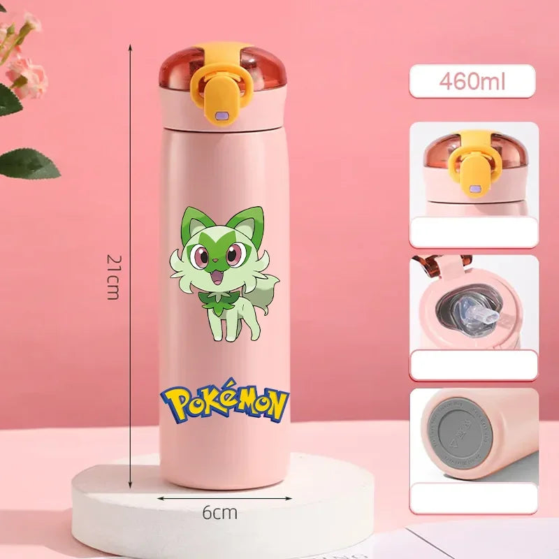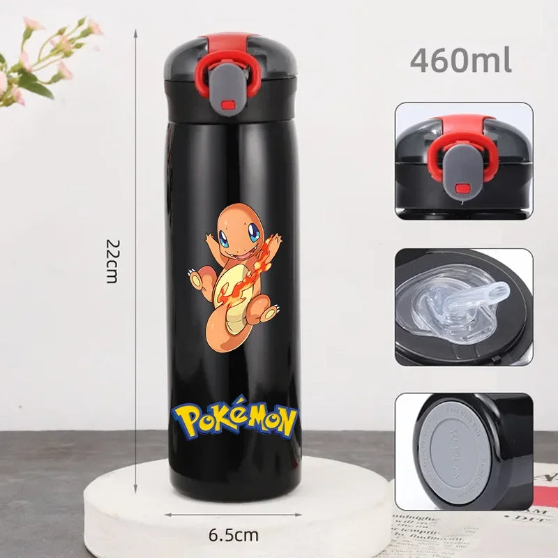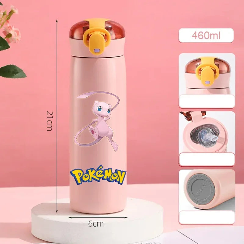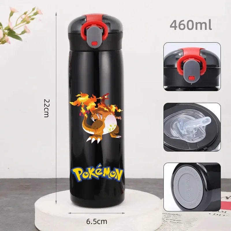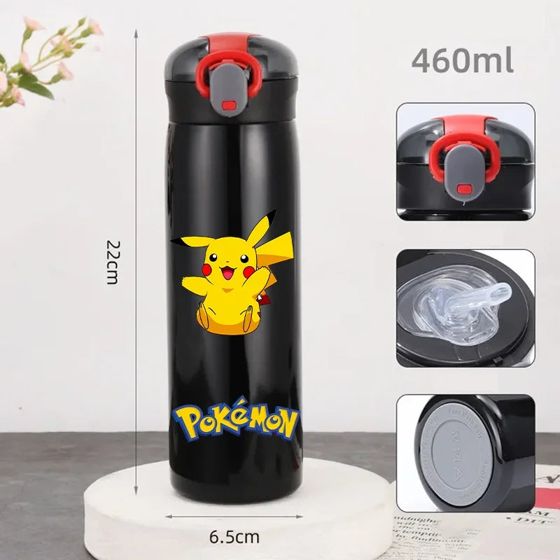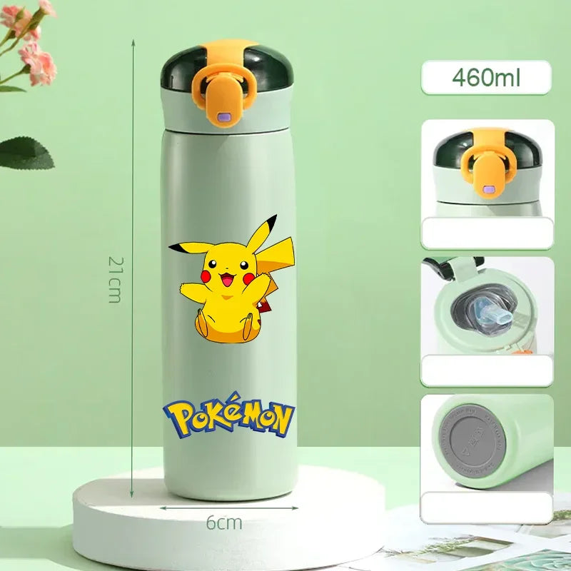 Pokemon 460ML Pikachu Portable Kids Thermos Mug with Straw Stainless Steel Cartoon Vacuum Flasks Cute Thermal Water Bottle