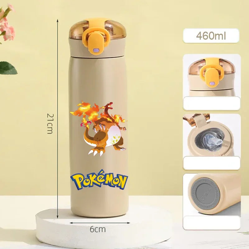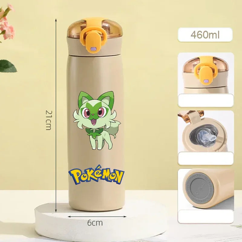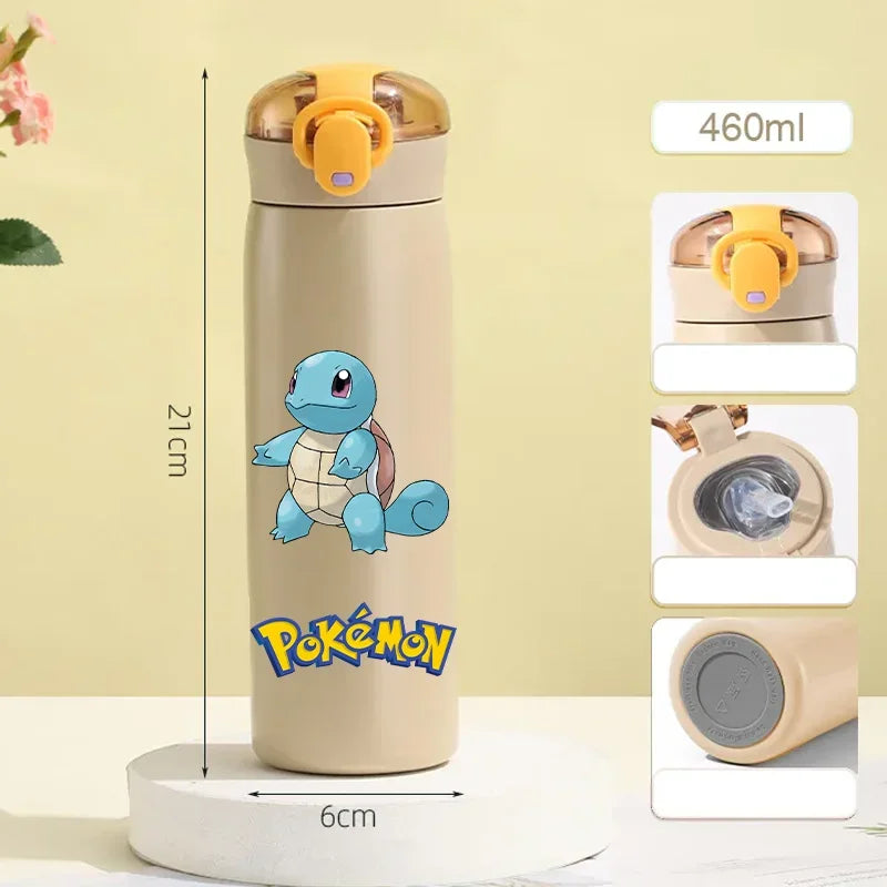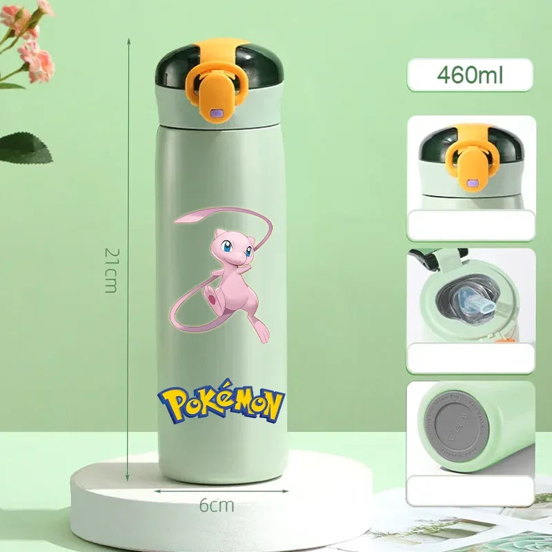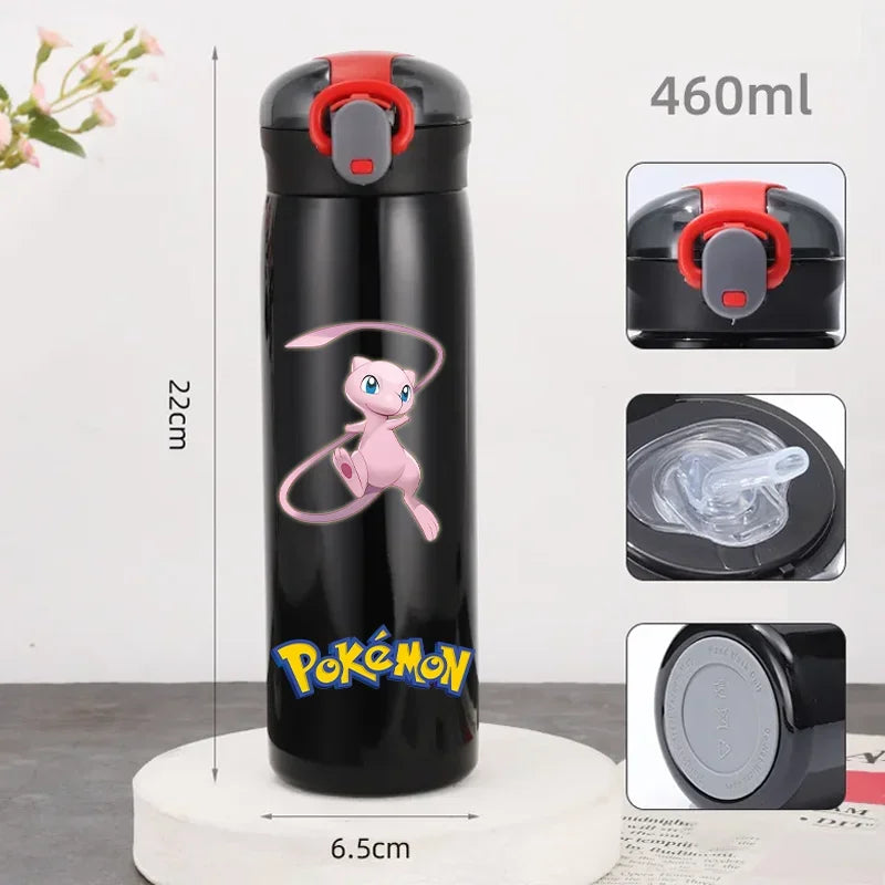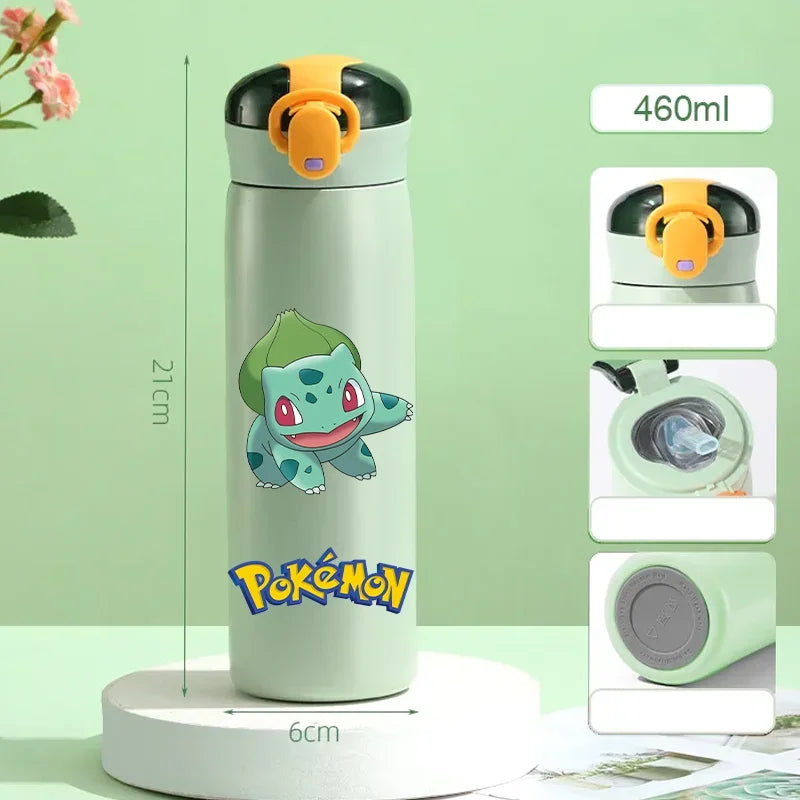 Pokemon 460ML Pikachu Portable Kids Thermos Mug with Straw Stainless Steel Cartoon Vacuum Flasks Cute Thermal Water Bottle