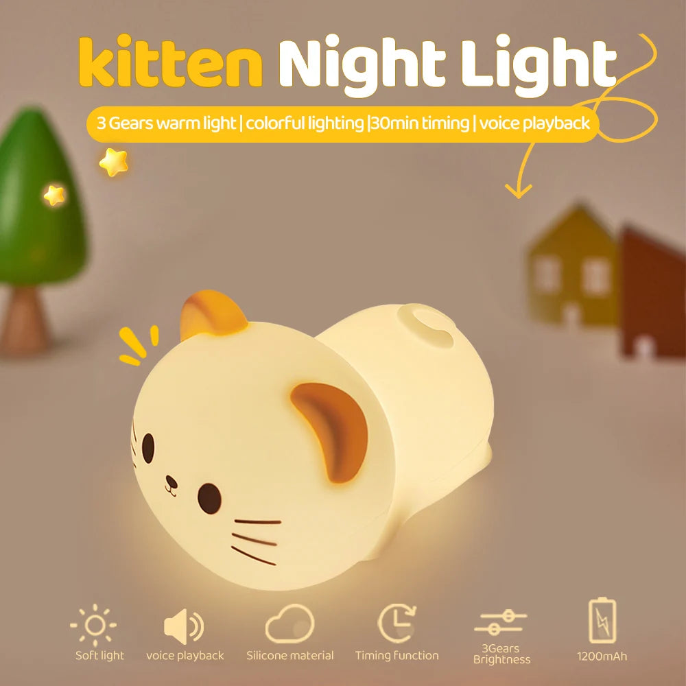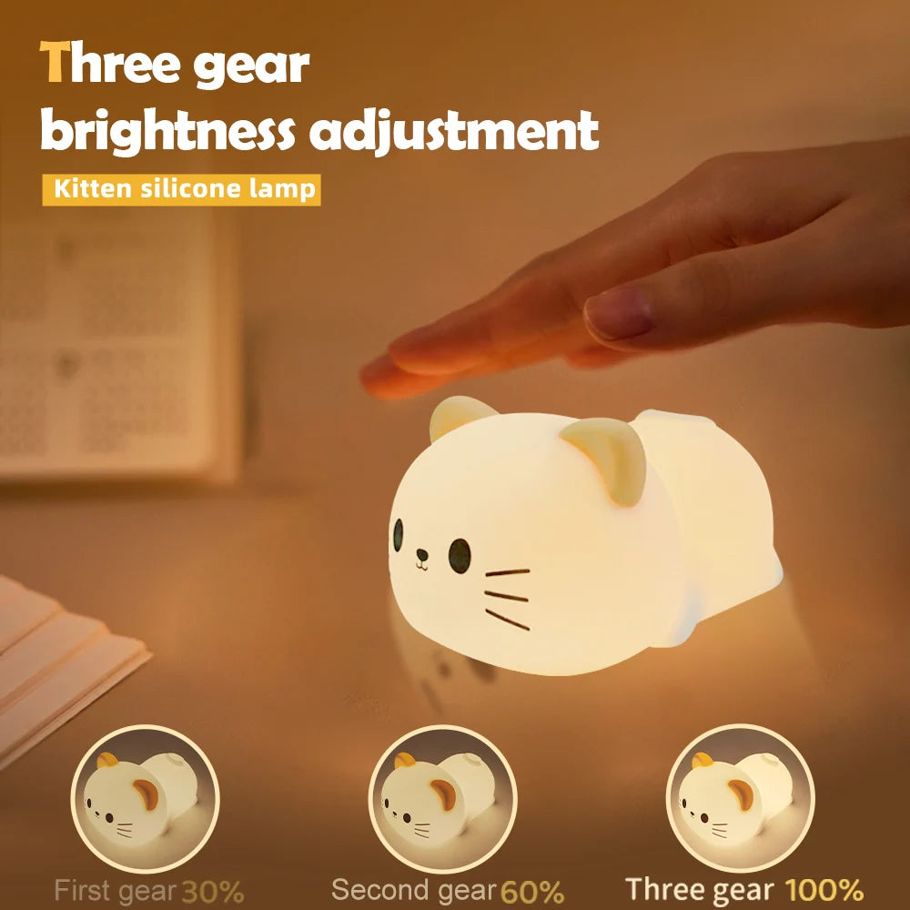 Silicone Dog Nursery Night Light 3 Level Brightness Cat Sleeping Nightlights Touch Sensor Beside Lamp For Kids Room