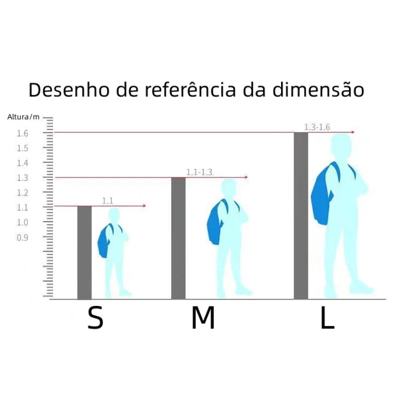 School bag size: Small 26×14×35cm, Medium 28×16×38cm, Large 32×18×42cm.